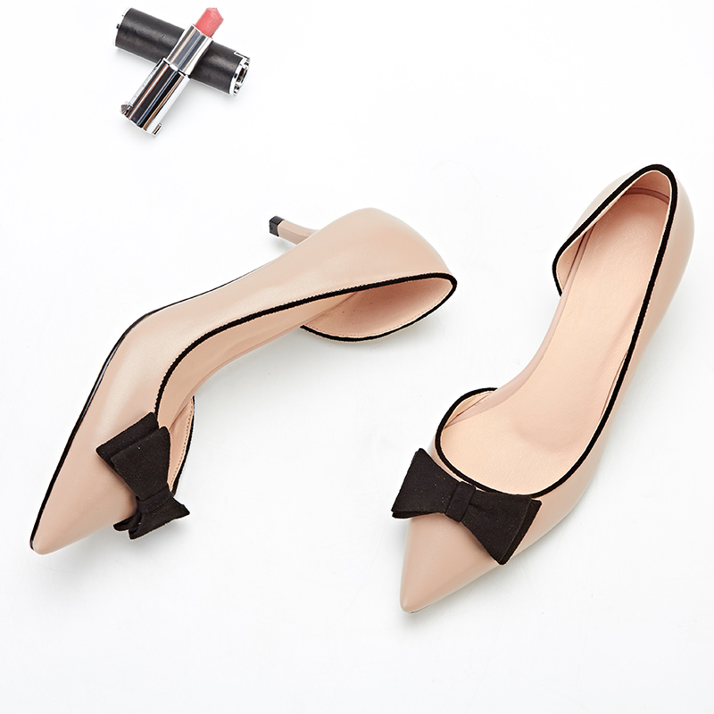Cabury秋小清新少女单鞋裸粉色尖头细跟中跟伴娘小高跟鞋淑女甜美