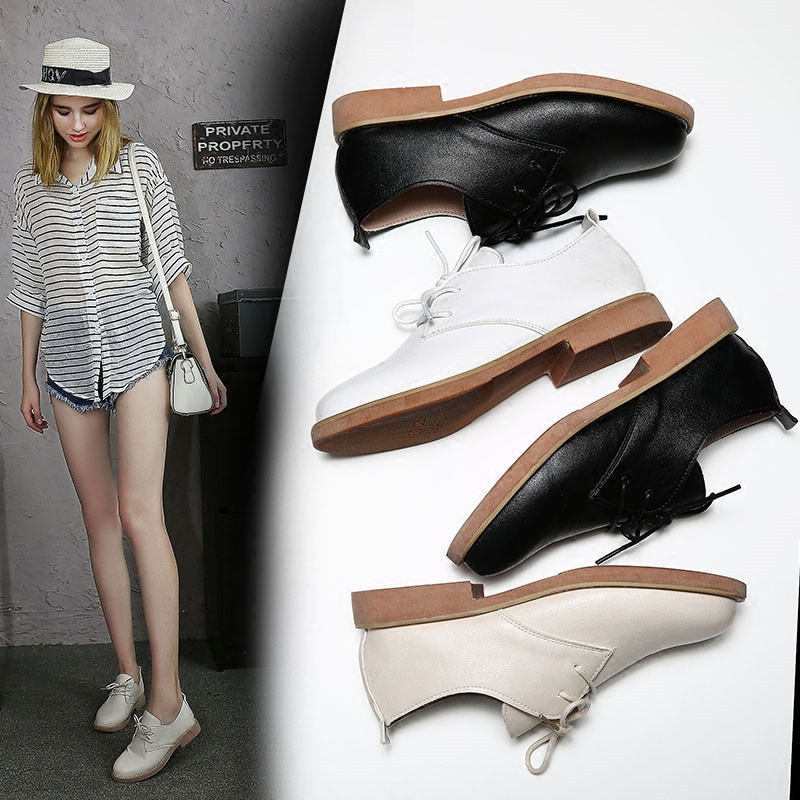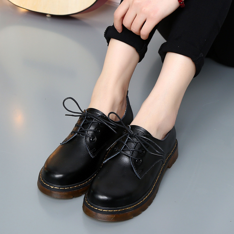 春秋小皮鞋女真皮圆头单鞋学院风低帮鞋情侣款马丁鞋女韩版英伦