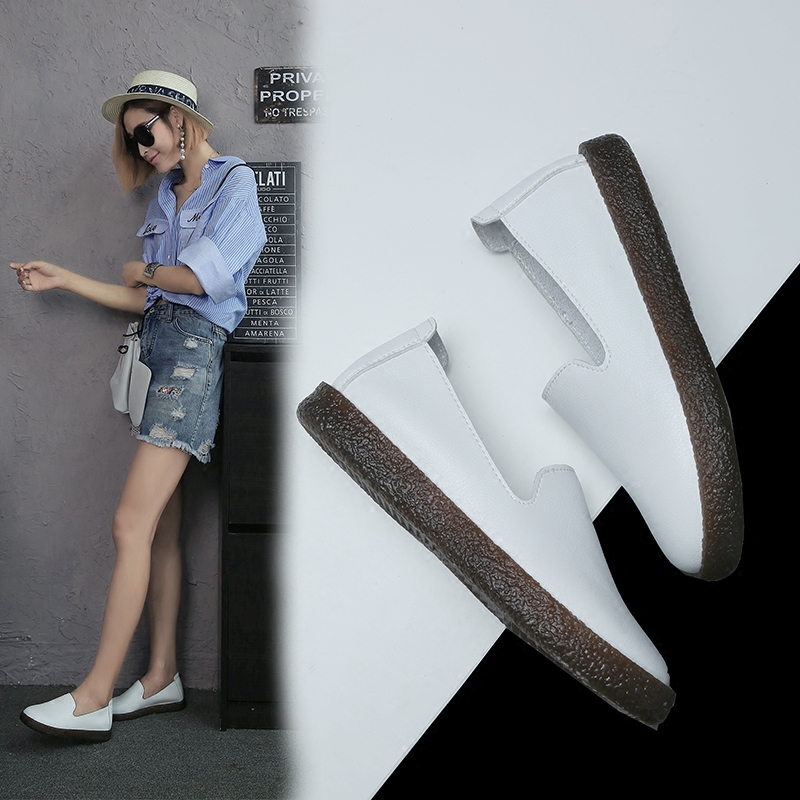 妙钻2017韩版秋季学生百搭小白鞋女平底真皮一脚蹬女休闲板鞋单鞋