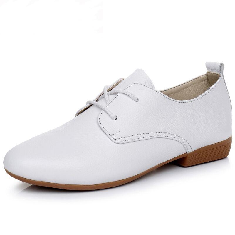 真皮小白鞋女夏系带韩版学院风平底百搭女单鞋英伦休闲女鞋秋皮鞋