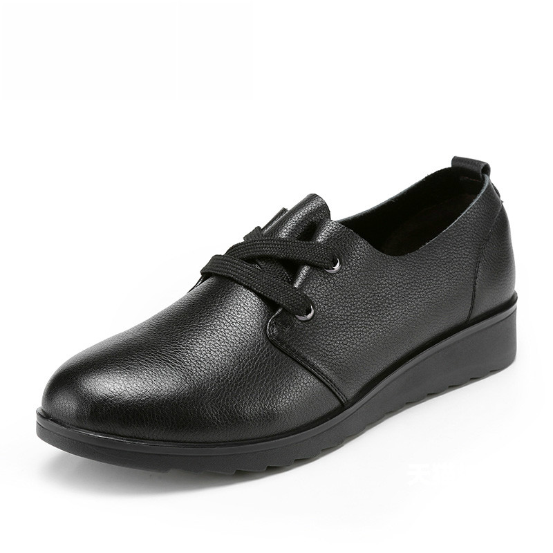 红蜻蜓女鞋秋新款真皮舒适软底皮鞋女平底休闲单鞋女大码妈妈鞋子