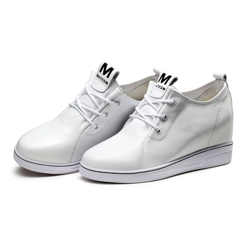 尚丽秀秋季平底系带真皮百搭小白鞋女透气内增高女鞋休闲鞋子单鞋
