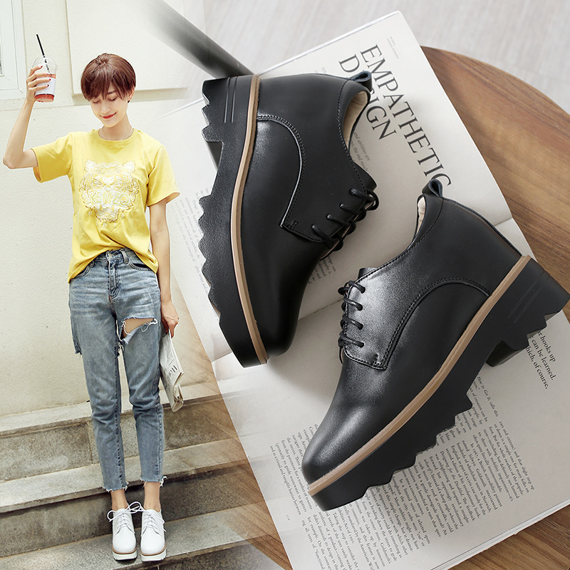 ZHR2017秋季新款英伦风单鞋真皮内增高女鞋厚底小皮鞋松糕休闲鞋