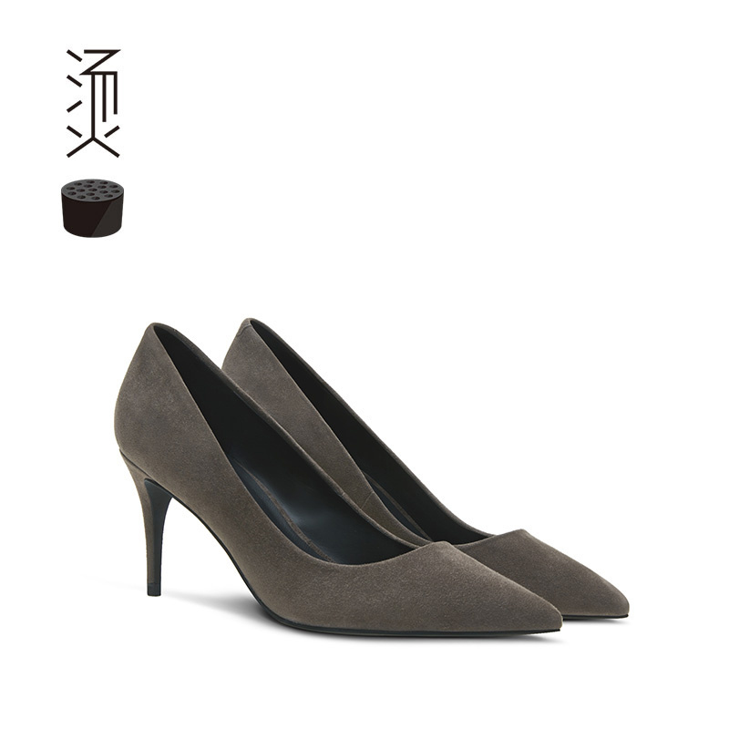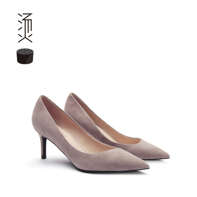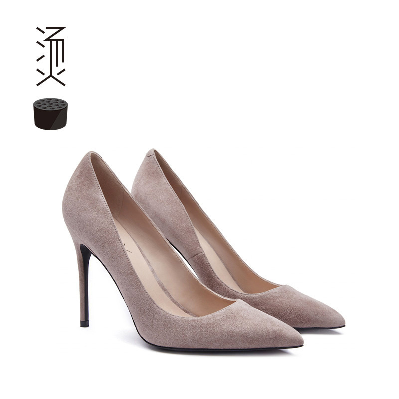 烫社交女鞋时尚灰裸色羊猄羊反绒面尖头高跟鞋细跟中跟浅口单鞋女
