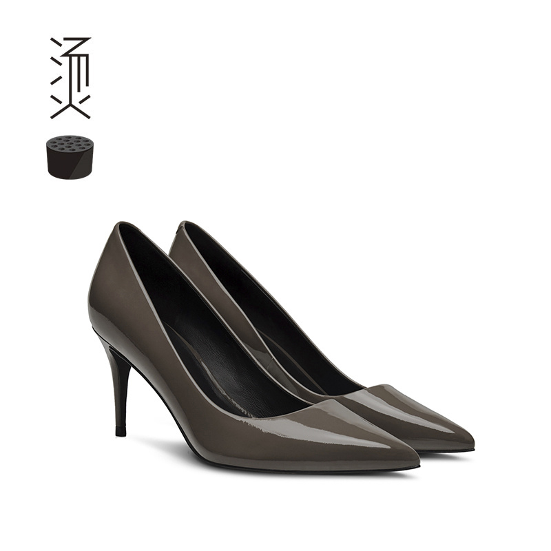 烫社交女鞋太妃浅咖啡色漆皮浅口尖头真皮中跟鞋高跟单鞋新品