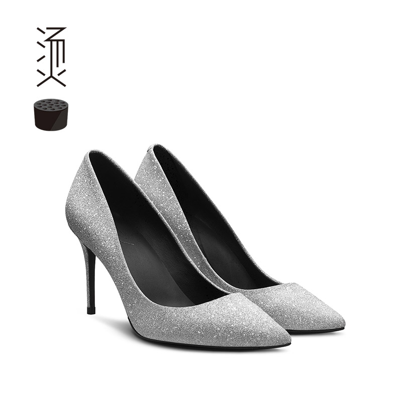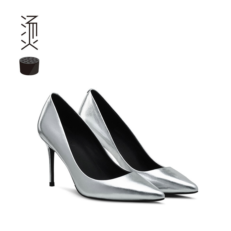 烫社交女鞋灰色银色简约珠光牛皮真皮尖头高跟鞋女细跟浅口单鞋