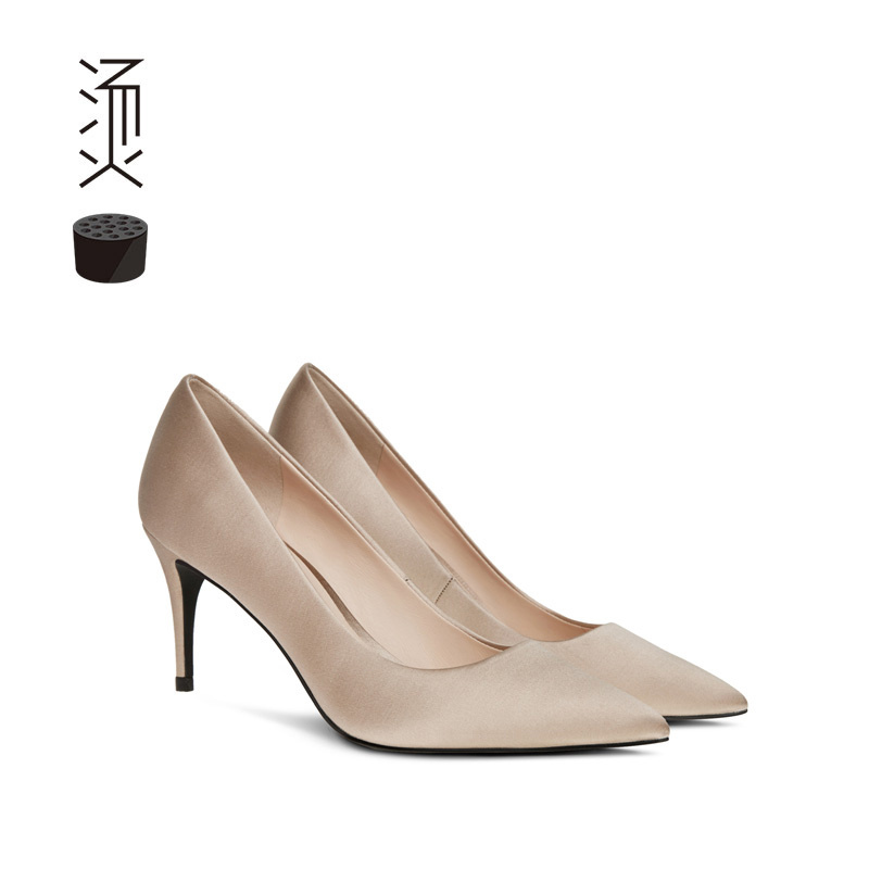 女鞋时尚气质香槟色裸色真丝绸缎浅口尖头细跟高跟鞋单鞋