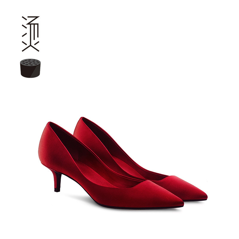 红色宴会简约优雅真丝绸缎低跟尖头细跟高跟鞋浅口单鞋