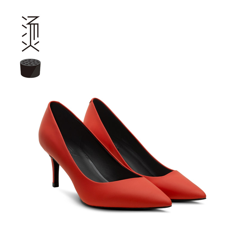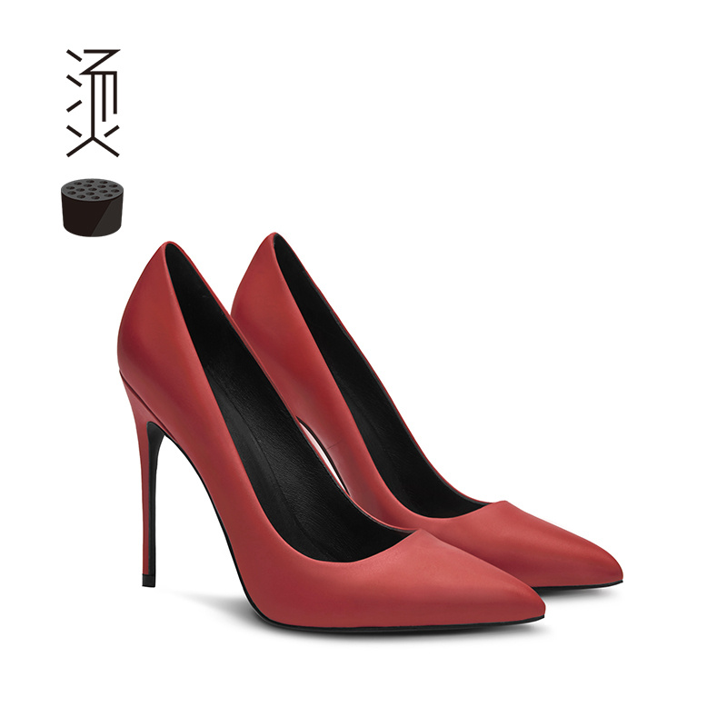 红色时尚简约珠光牛皮真皮尖头高跟鞋女细跟浅口单鞋