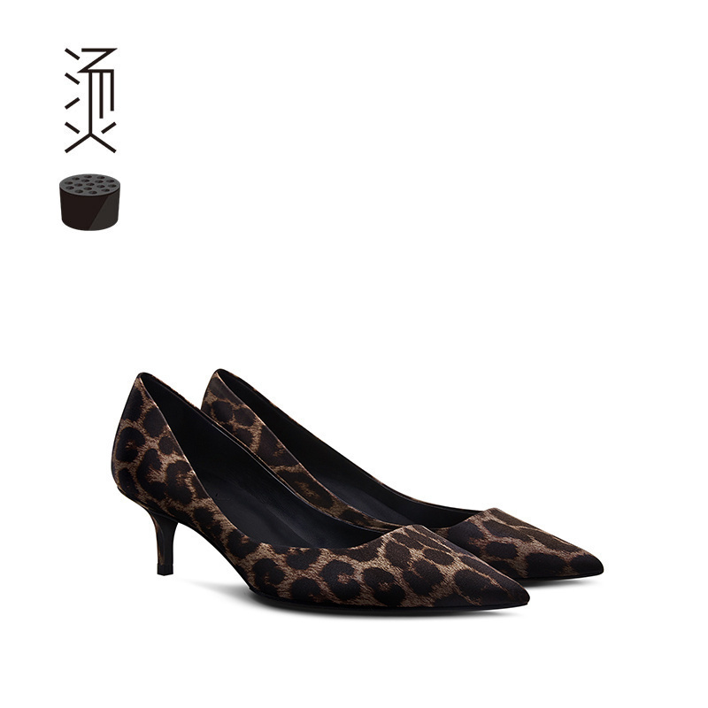街拍咖啡色豹纹沙丁布绸缎尖头浅口高跟鞋超高跟单鞋