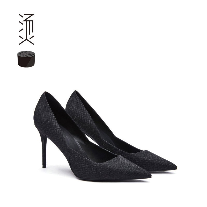 侧V时尚浅口单鞋女黑色星空网布尖头高跟鞋女细跟街拍