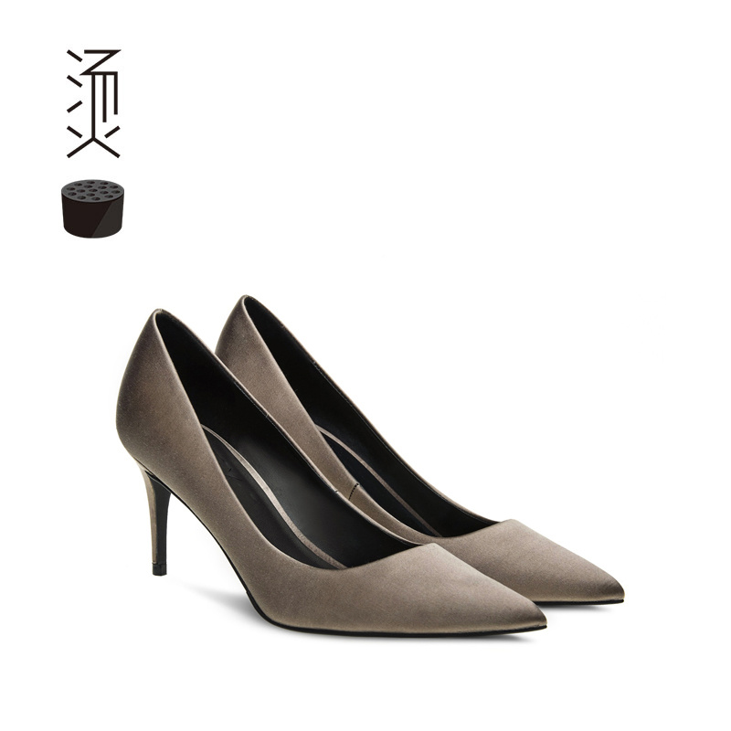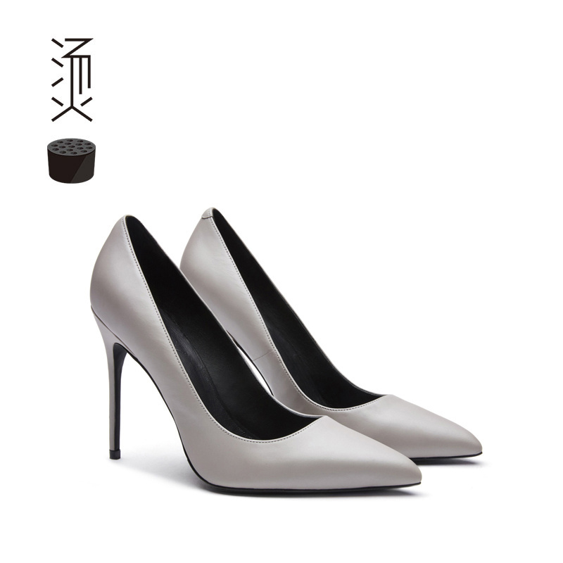 烫社交女鞋时尚简约灰裸色羊猄羊皮尖头高跟鞋细跟宴会浅口单鞋女