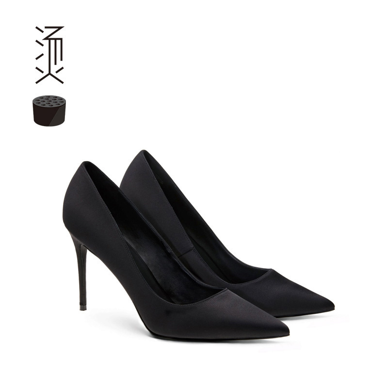 烫社交女鞋时尚黑色正装宴会晚会真丝绸缎尖头高跟鞋细跟浅口单鞋