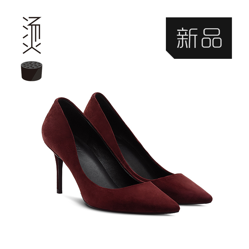 烫社交女鞋酒红色羊猄皮羊反绒面尖头细跟高跟鞋单鞋2017秋季新款