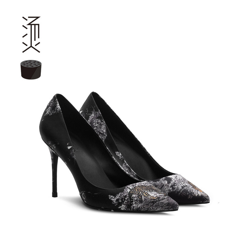 黑夜丛林花纹浅口尖头高跟鞋欧美单鞋女2017新款街拍