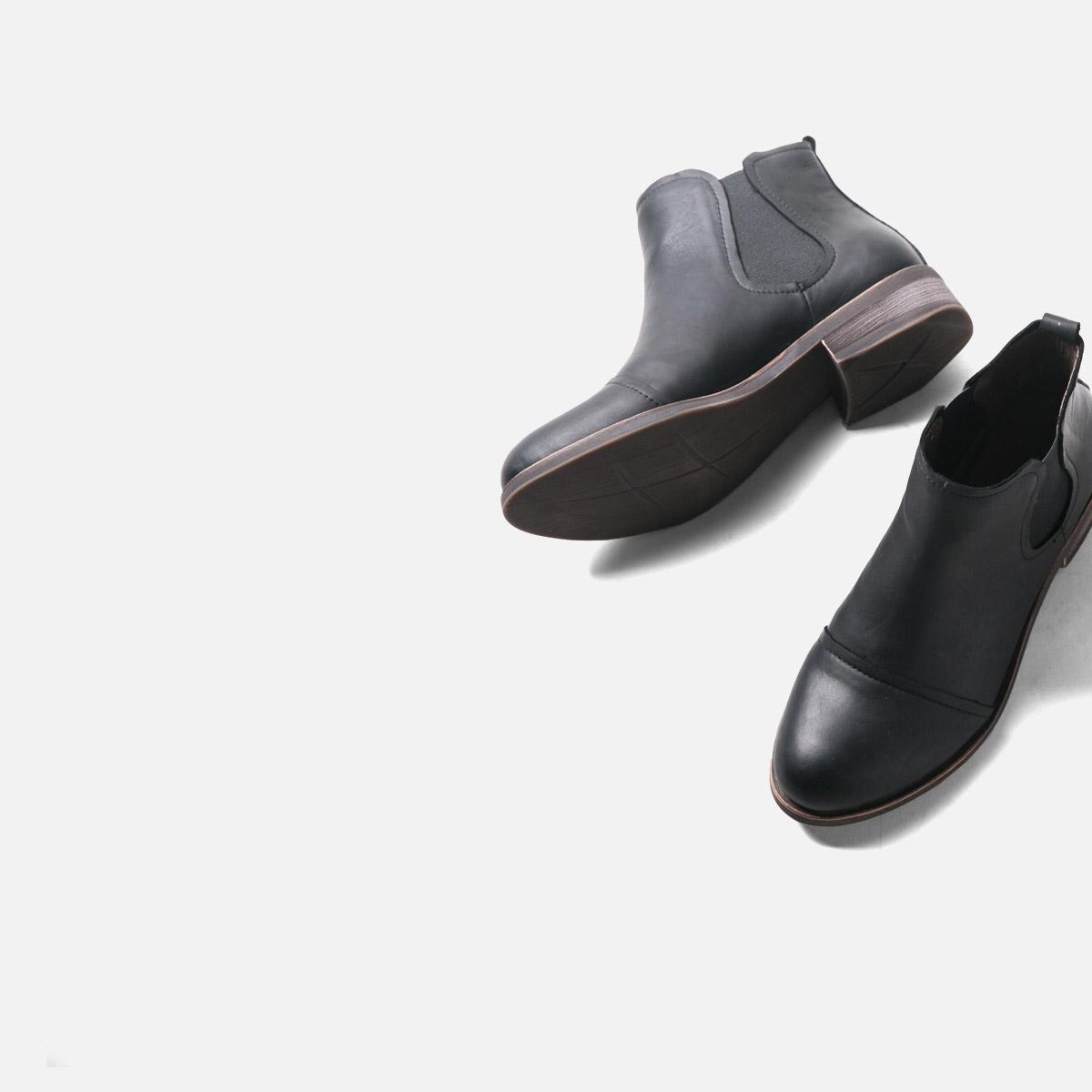 青婉田秋冬新款中跟切尔西靴女英伦复古短靴真皮圆头百搭女靴-
