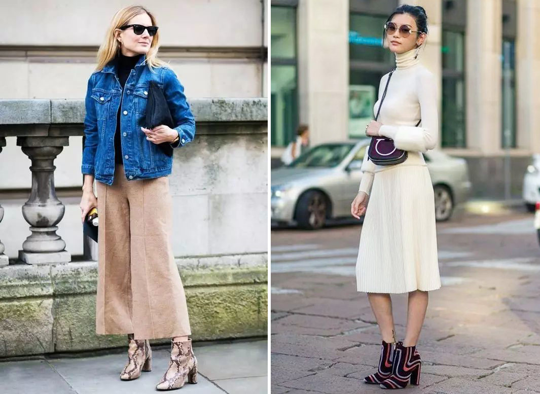 或者以蛇皮纹路凸显野性魅力、几何线条大展艺术动感,花色短靴都办得到。再搭配上还是遵循繁简结合的规则,鞋子够花哨,那上下装的搭配优选基础款。