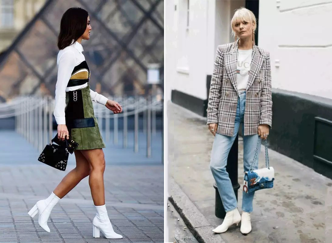 白色代表着纯粹,很温暖也很高贵,周身萦绕着古堡公主的雅致。在当季单品趋势预测时,白色短靴就已经引起人们关注。现在果然不出所料,白靴已经开始泛滥街头了。