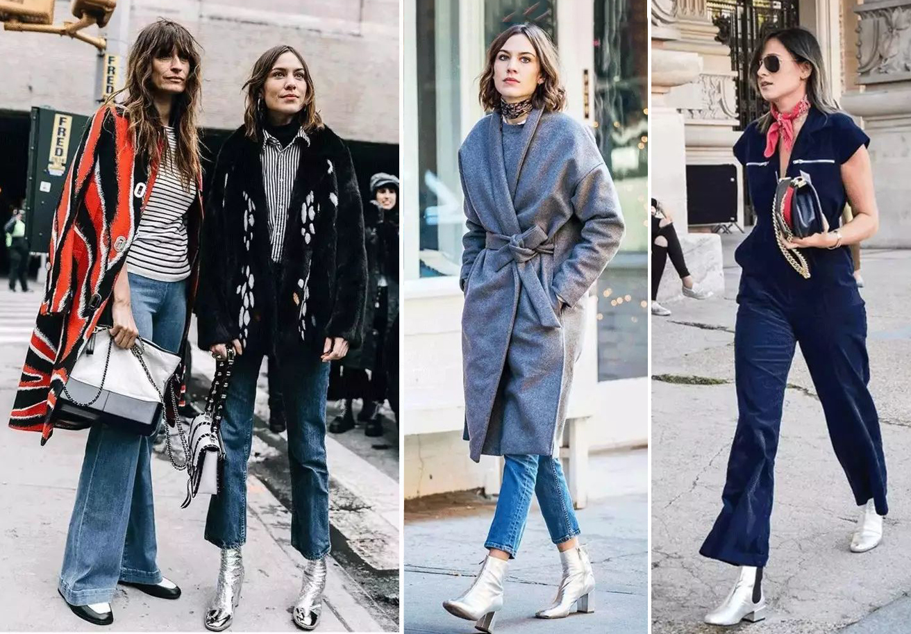 论实穿好搭就选白色,论气场态度就选红色,但要论起个性前卫,没有谁比金属色更有发言权。具有未来科技感的金属色短靴也是本季的热点,其中更以银色为佳。