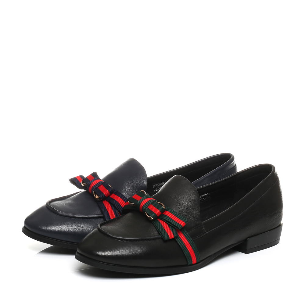 天美意2017秋新款羊皮乐福鞋女鞋织带蝴蝶结英伦风单鞋1083DCM7