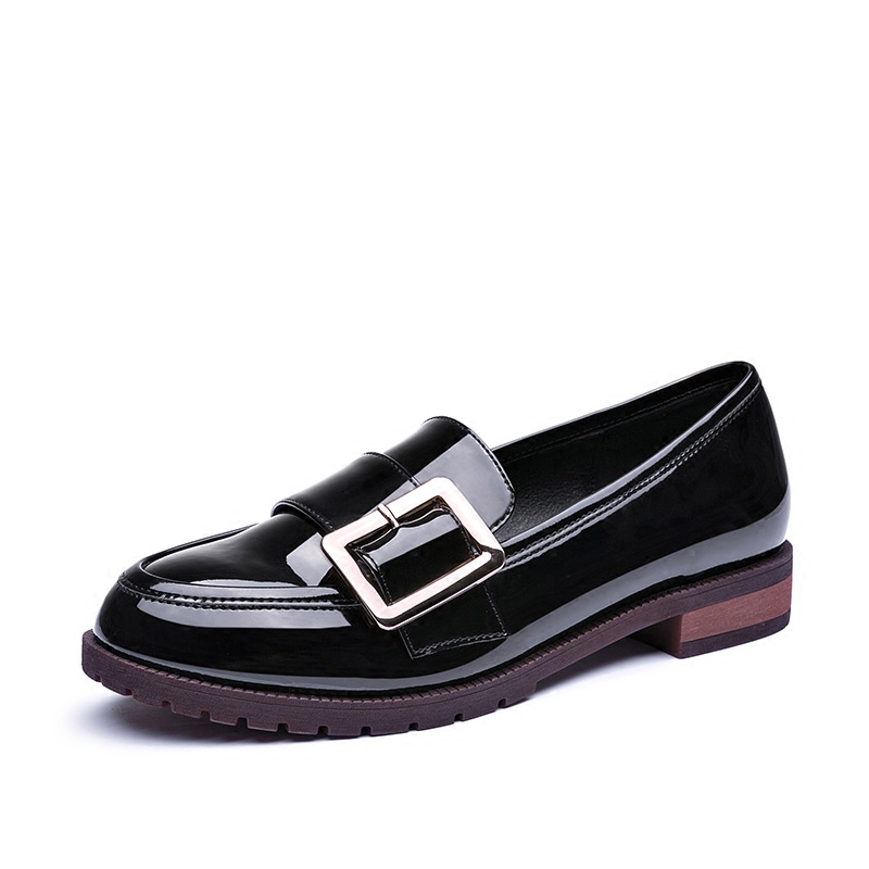 戈美其2017秋季新款英伦时尚单鞋漆皮休闲学生女鞋粗跟圆头鞋子潮
