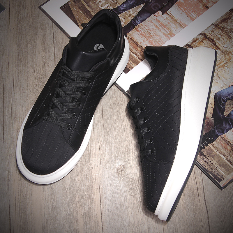秋季透气板鞋男小黑鞋厚底松糕鞋系带潮韩版增高休闲鞋子男学生鞋