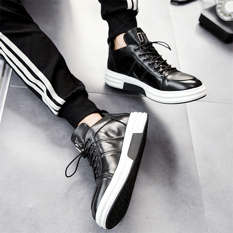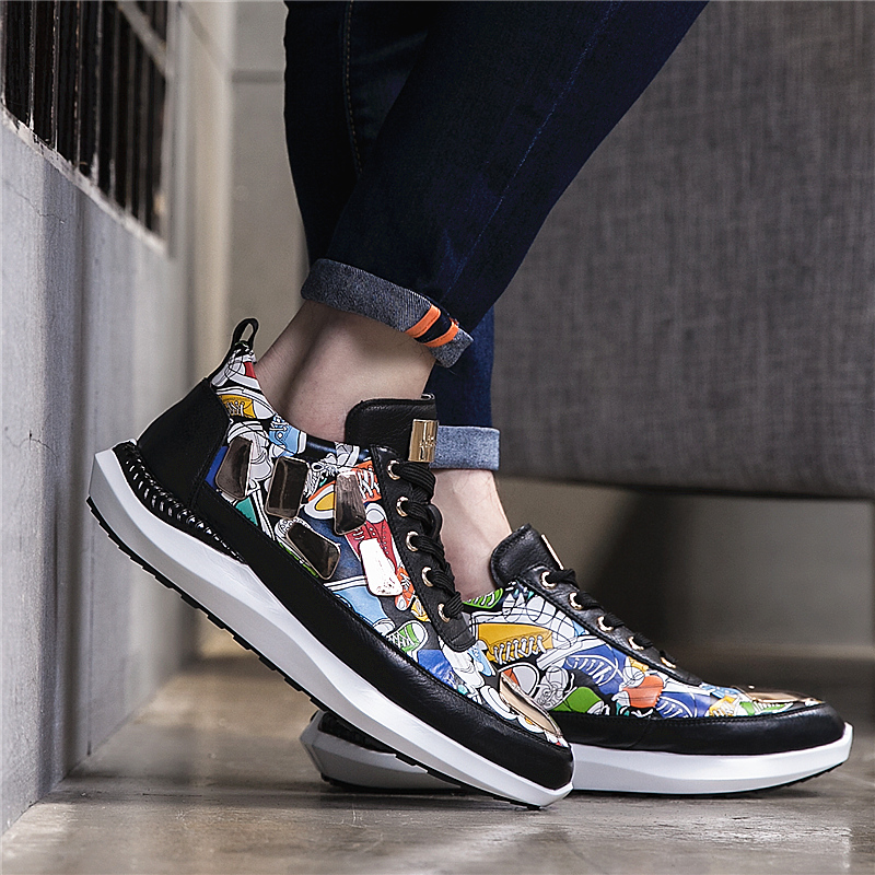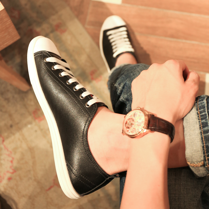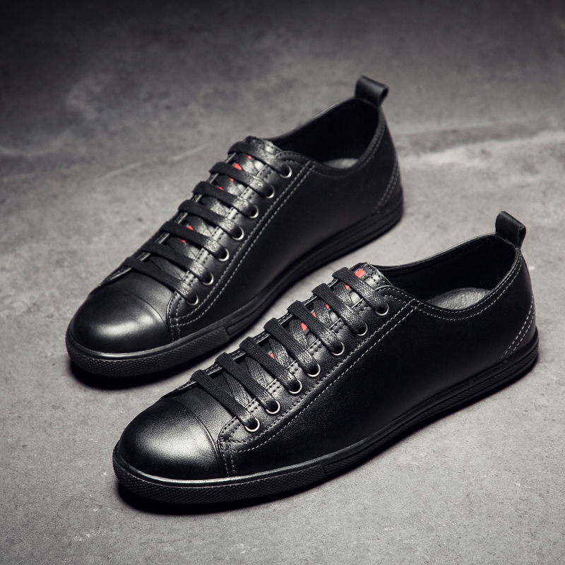 2018秋季男鞋潮鞋男士真皮休闲皮鞋系带青年韩版潮流板鞋新款鞋子