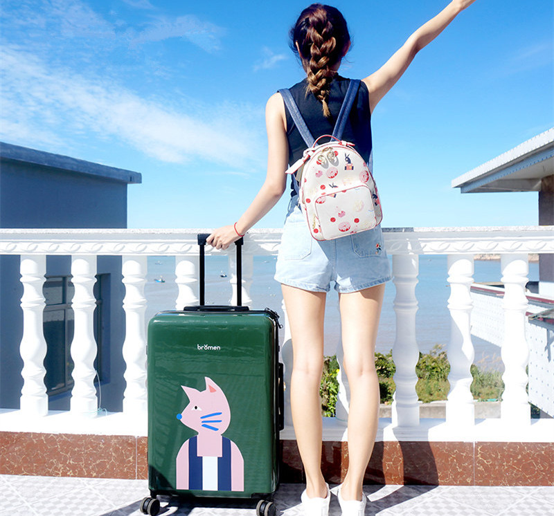 对于稀奇古怪的妹子们来说,行李箱也是诉说个性的表达方式,趣味的插画当然有着画龙点睛的魅力感,拎着这么可爱的箱子,真的恨不得每天都出门溜一溜。
