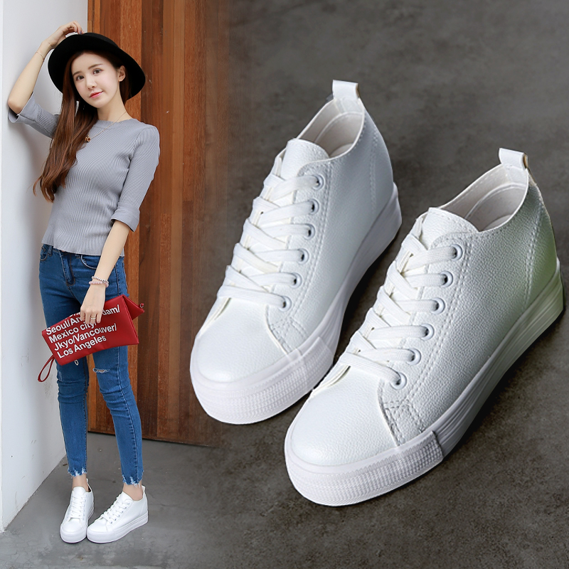 2017秋季新款女鞋系带厚底小白鞋女内增高百搭韩版白鞋学生板鞋潮