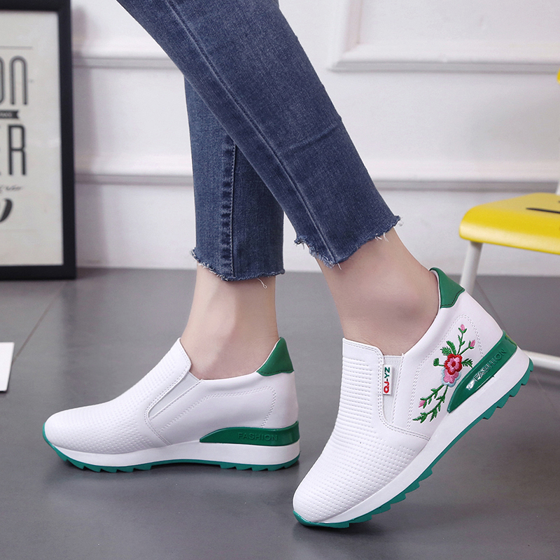 秋季一脚蹬女鞋内增高小白鞋女2017新款韩版百搭乐福鞋厚底休闲鞋
