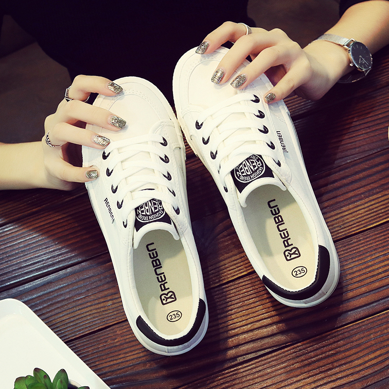人本帆布鞋女生平底百搭2017秋季韩版潮新款平跟板鞋中学生球鞋子