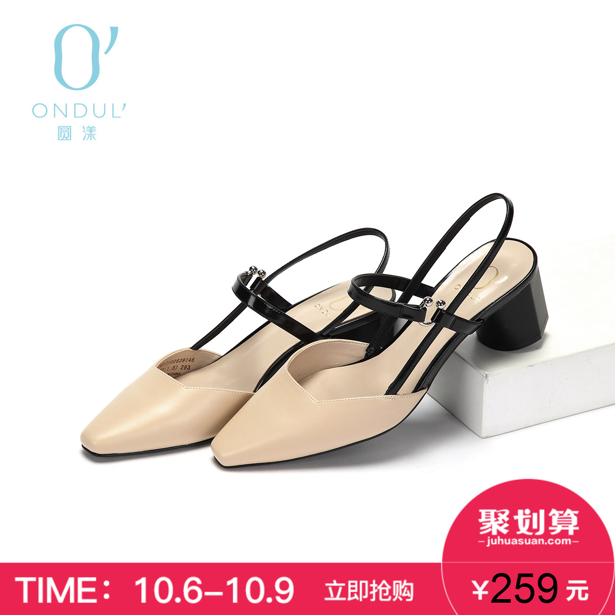 ONDUL/圆漾2017春新款单鞋时尚方头撞色扣带后空粗跟女单鞋