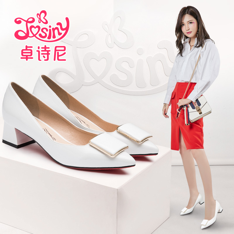 卓诗尼2016秋季新款浅口尖头单鞋百搭漆皮中跟粗跟女鞋163552190