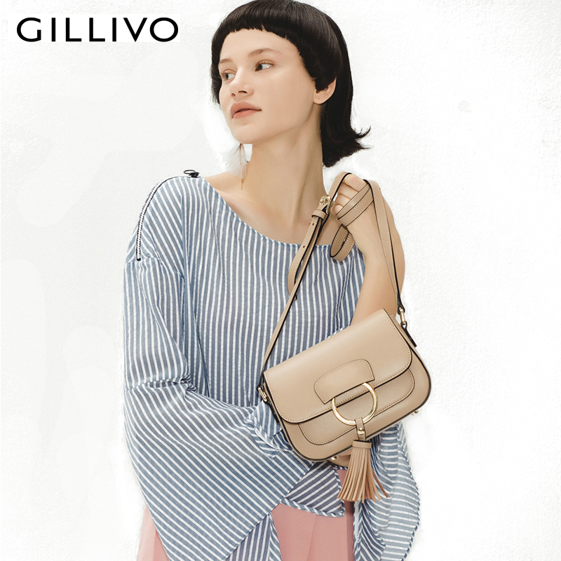 嘉里奥2017真皮女包新款单肩包斜挎包简约流苏迷你小包包马鞍包潮