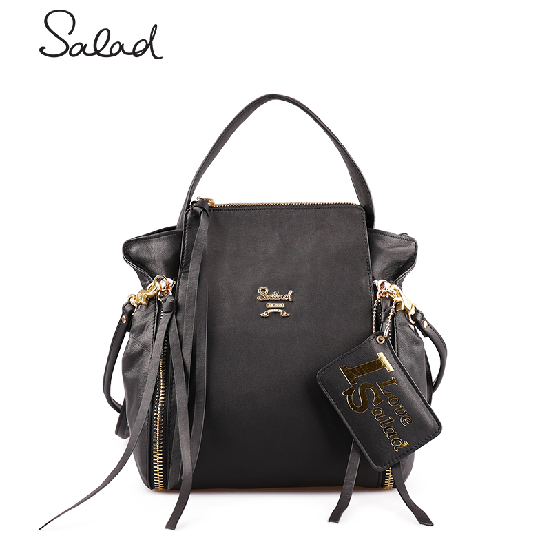 Salad专柜同款爆款水桶包单肩手提斜挎包双肩包牛皮纯色女包03899