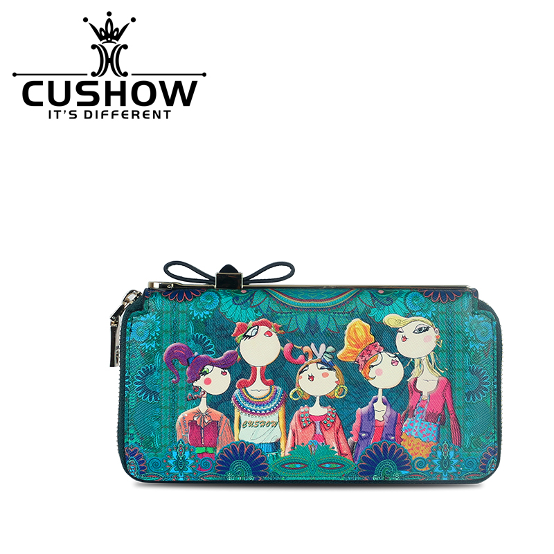 卡秀原创印花钱包女长款拉链手拿包2017新款欧美时尚牛皮大钞皮夹