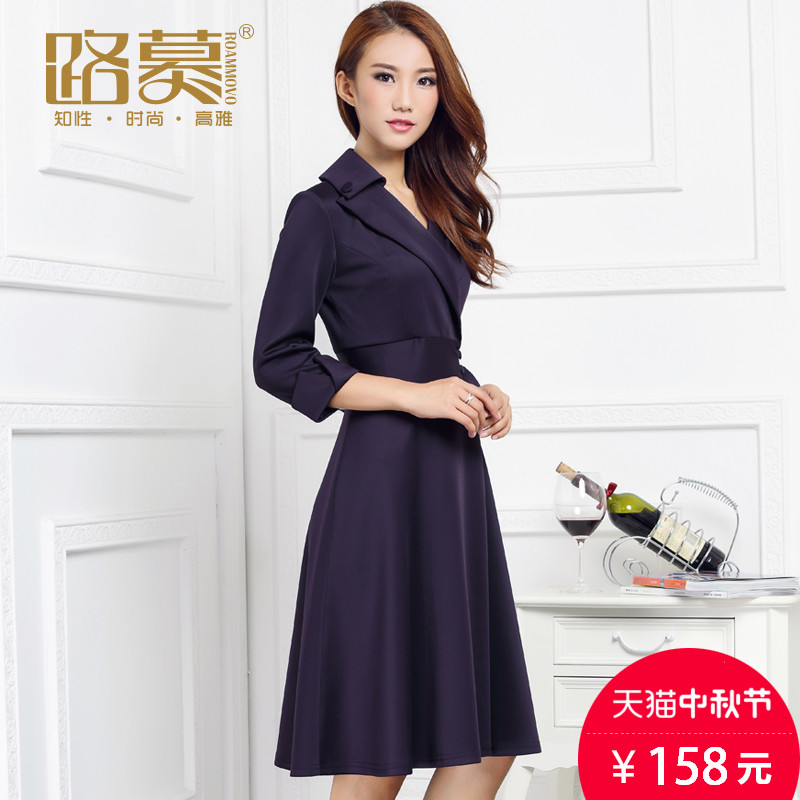 秋冬连衣裙2017新款品牌女装大码中长款OL长袖红色针织春秋季裙子