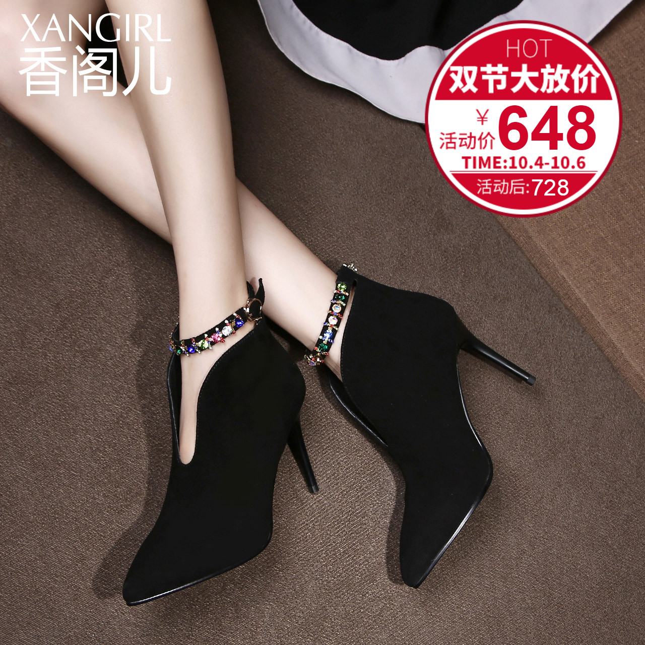 香阁儿新款尖头时尚冬靴2017冬季欧美性感细跟百搭纯色高跟短靴女