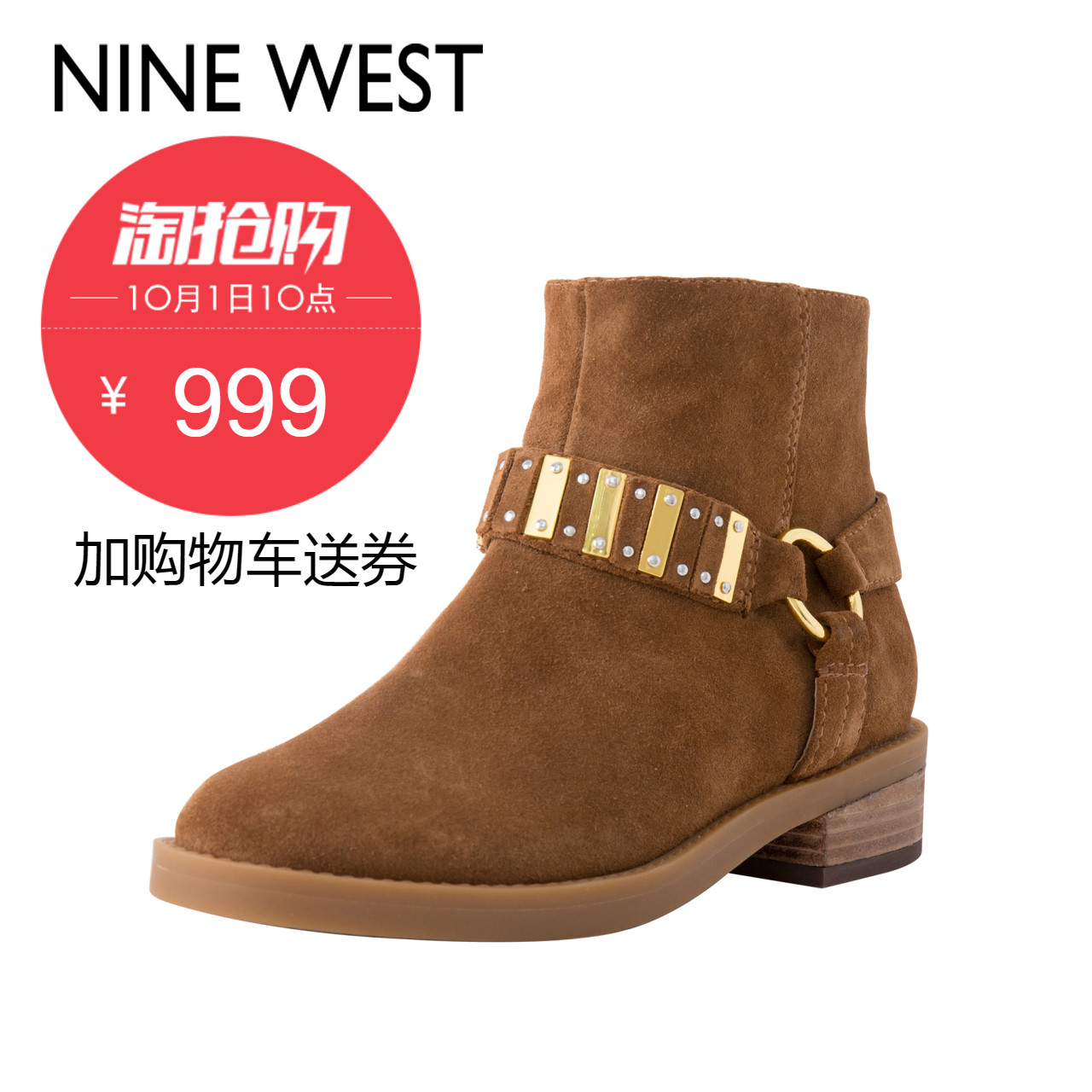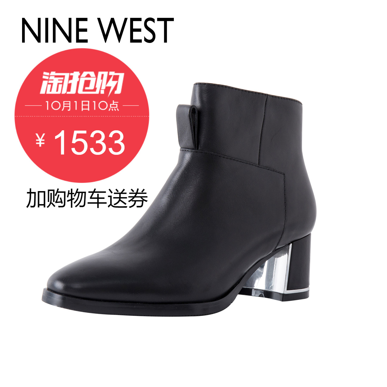 ninewest玖熙2017秋冬新款短靴女马丁靴 柔软羊皮粗跟圆头靴子