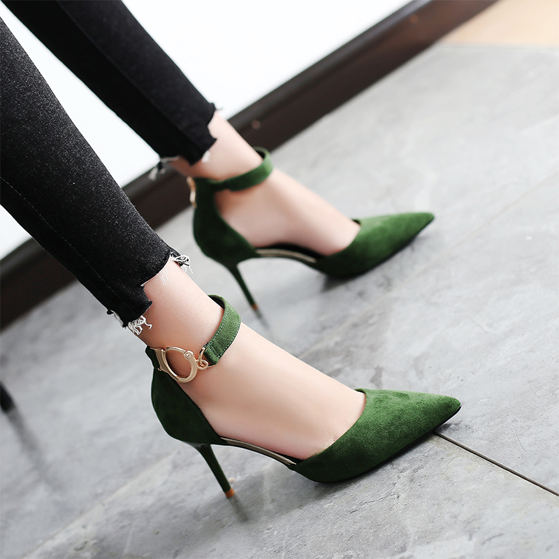 个子矮想要增高的自然要选择尖头系列的单鞋,它具有延长腿型的视觉效果,这款 一字扣绒面单鞋细跟单鞋采用优质的绒面材质,鞋底采用天然橡胶底,做到了稳固防滑的效果,在这个天气会给你凉爽舒适的体验,鞋子穿起来整体非常时尚又高贵,爱美的妹子们不要错过哦。
