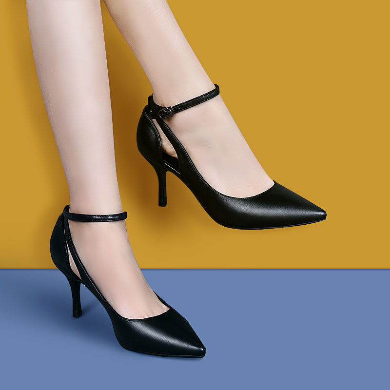 这款一字扣高跟单鞋款式简约大方,不管你穿什么类型的服饰都可以让你时尚度满满的,中空设计,时髦又百搭,细跟完美拉长腿部线条,凸显出你的大长腿,给人一种高档的感觉,穿上尽显性感迷人的女人味。