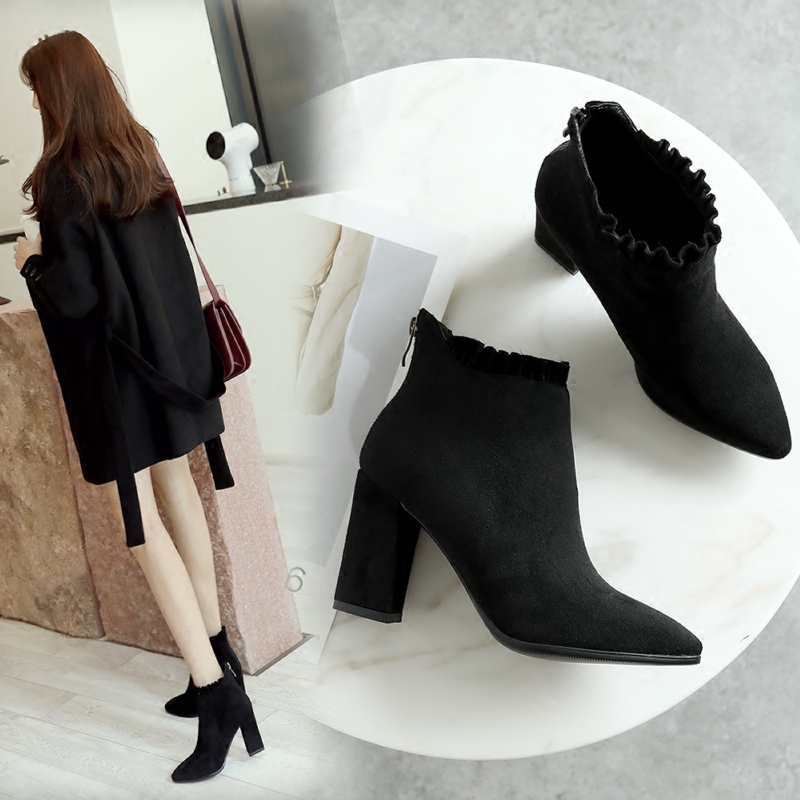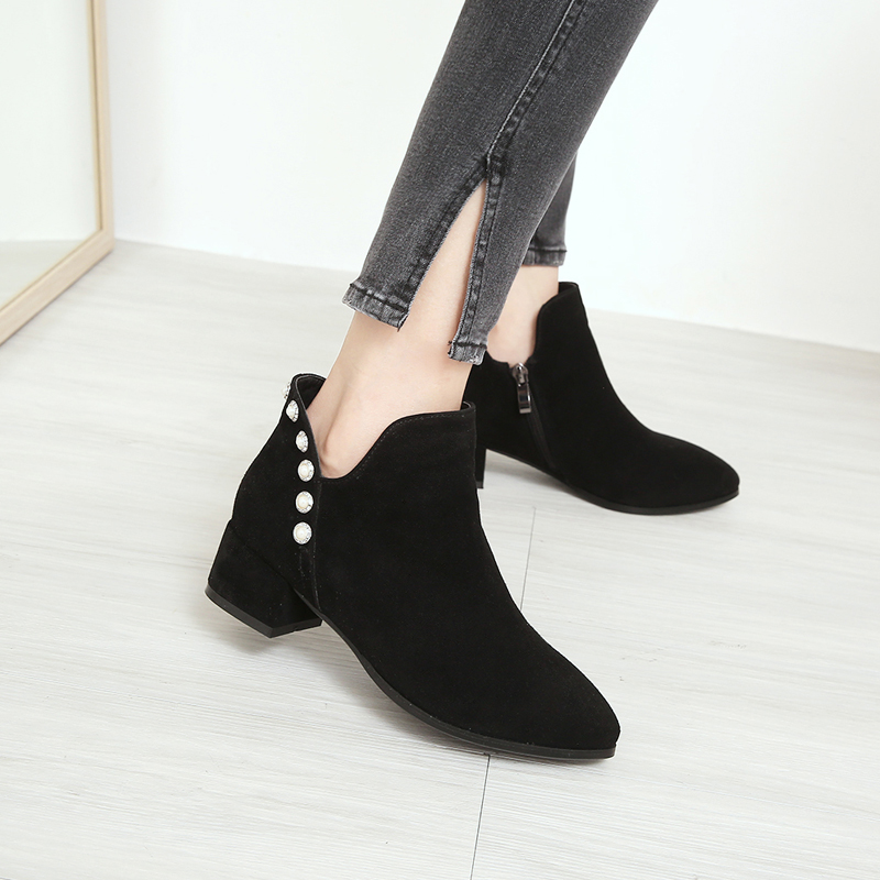 2017新款短靴女秋粗跟高跟鞋女鞋大码韩版百搭尖头马丁靴靴子