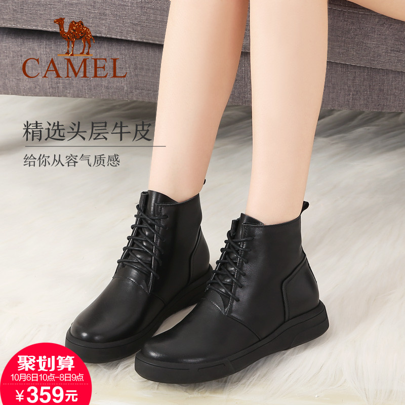 2017新款 骆驼女靴秋冬季真皮短靴女平底黑色马丁靴时尚靴子