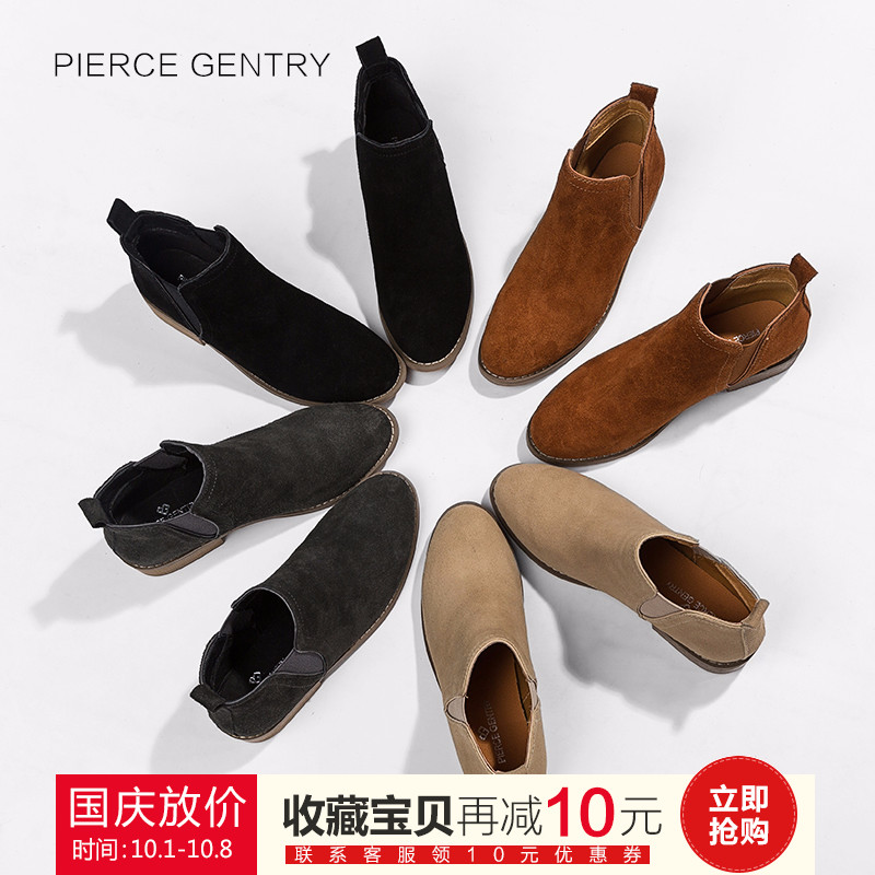 切尔西短靴女磨砂真皮英伦风圆头粗跟中跟女靴子2017新款裸靴