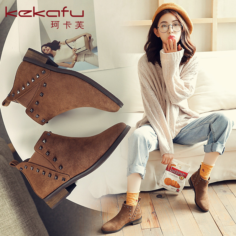 珂卡芙2017冬季平底马丁靴女铆钉短靴女切尔西靴复古英伦靴子