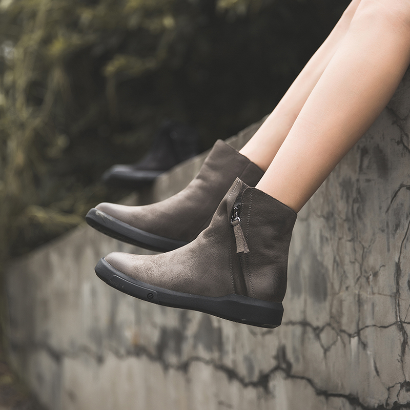 真皮英伦风裸靴,复古的圆头显得很有格调,材料是那种有一些光泽的,很有质感哦。鞋口稍紧,穿着特别的包脚