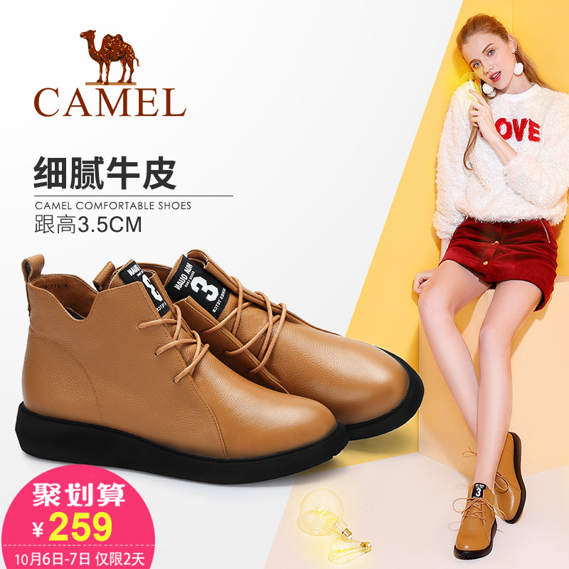 骆驼女鞋 2017新款短靴 时尚英伦系带靴子百搭真皮短筒女靴
