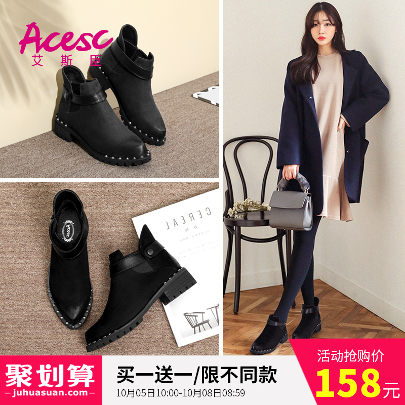 艾斯臣2017春秋季新款英伦风短靴马丁靴女百搭女鞋学生女靴子