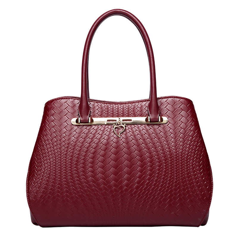 简约编织纹复古女包手提包牛皮包包气质妈妈包