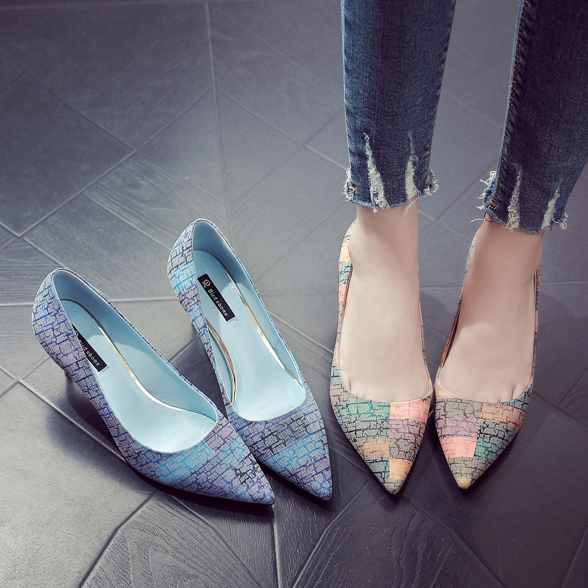 2017秋季新款中跟细跟高跟鞋时尚尖头单鞋女士皮鞋韩版百搭鞋子春
